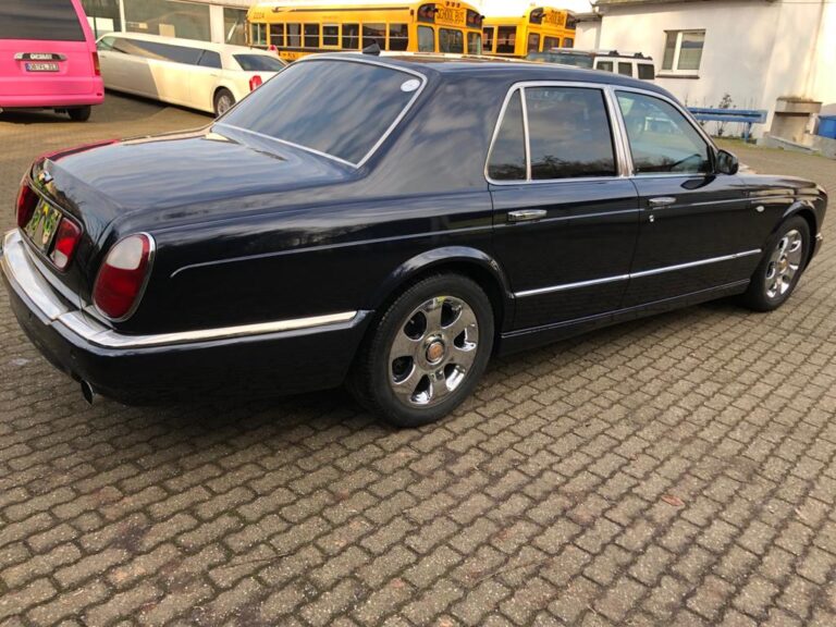 Der Bentley Arnage von Florida Exclusiv Car in Oberhausen ist ein Prachtexemplar. Die Außenlackierung in einem dunklen Königsblau gehalten, die voluminösen Reifen auf Chromfelgen montiert und Innen feinstes Connolly-Leder in hellbeige . Und unter der Haube arbeitet der altbewährte originale Rolls Royce Motor mit knapp 7 Liter Hubraum.