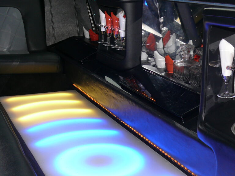 Rein ins Glück und raus in die Nacht, mit dem Luxus Chrysler von Florida Exclusiv Car. Was der Stretch Chrysler außen verspricht, hält er innen problemlos. Wer sich schon an den tollen Chromfelgen nicht satt sehen konnte, der kommt im Luxus-Innenraum so richtig auf seine Kosten. Denn auf dem Menü für das 3-Sterne-Deluxe-Interieur stehen die neuesten und chicsten Features, die es zur Zeit für Leihlimousinen gibt: Hochwertige Ledercouchen bieten Platz für bis zu 8 Personen. Die erfreuen sich an reichhaltigem Angebot in der Bar und an Entertainmentgeräten.